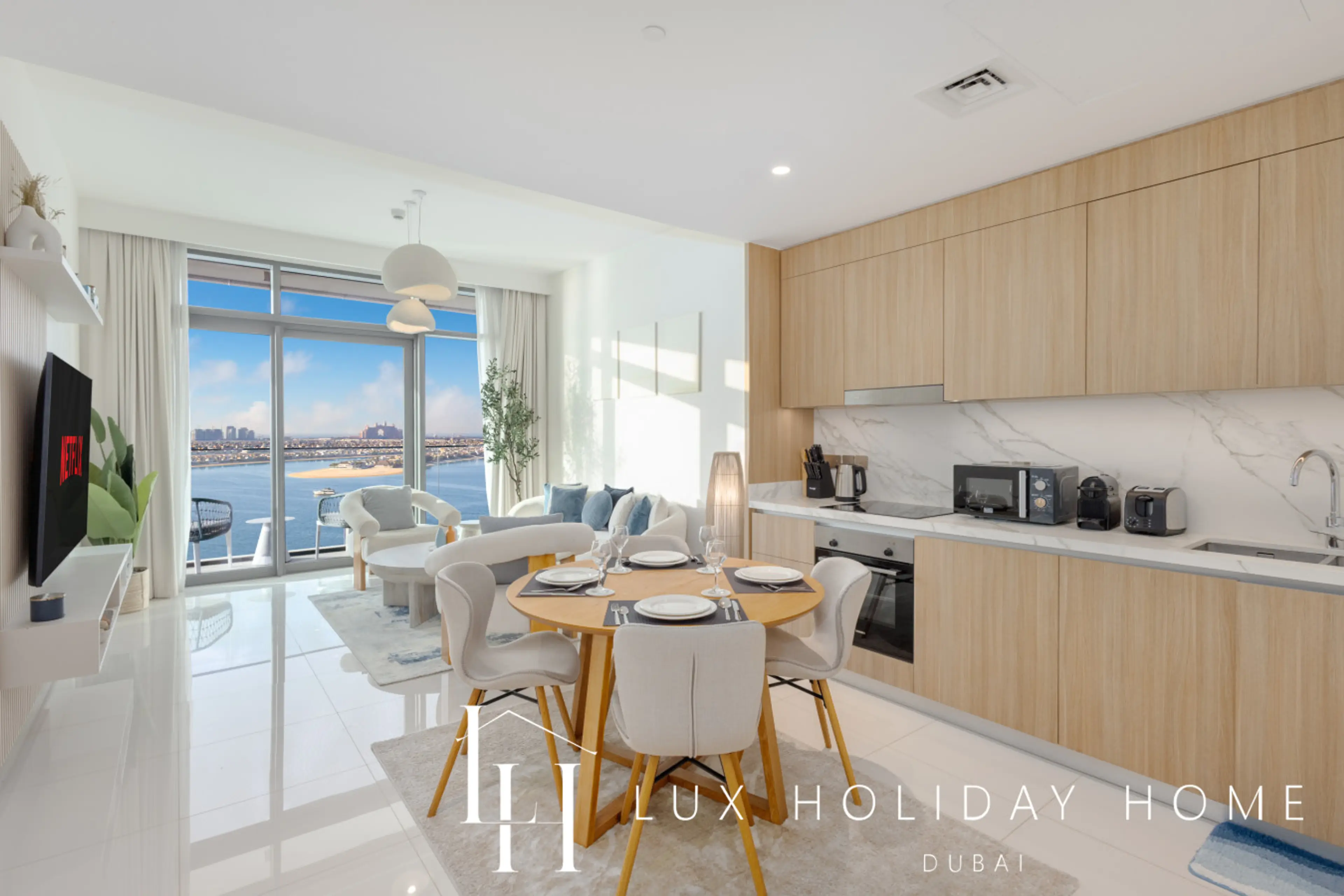 Welcome to LUX | The Atlantis View Luxury Beach Suite 2. The apartment feels bright and open, with clear views stretching across the sea. There’s a relaxed flow to the space, making it easy to step outside and enjoy the view at any time of day. Palm Jumeirah and Atlantis sit gently in the distance,...